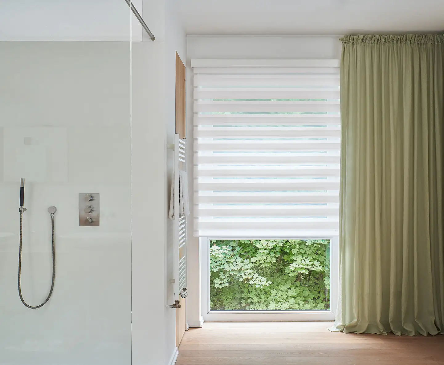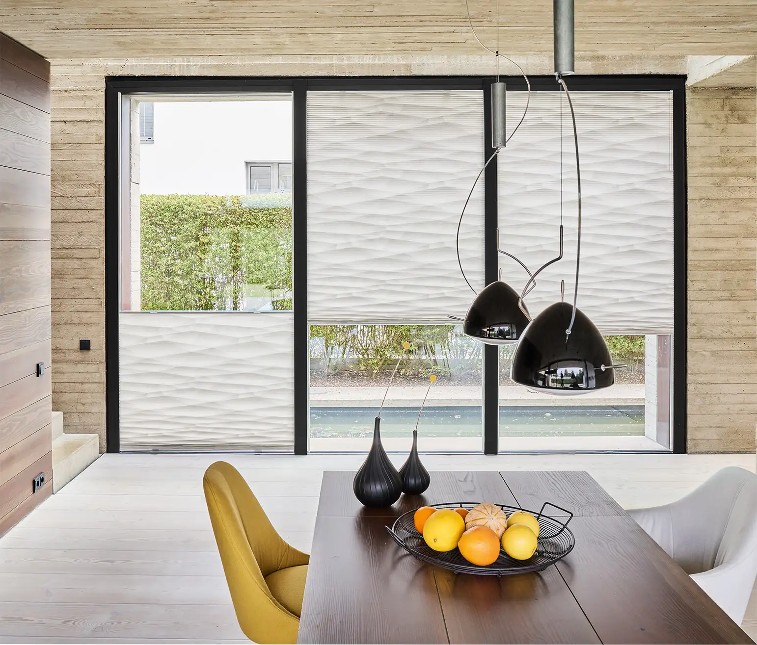Die exklusiven Silhouette® von Luxaflex ermöglichen sanften Lichteinfall, diskreten Sichtschutz und zugleich einen klaren Blick nach draußen. In einer breiten Auswahl an Farben und edlen Stoffen, wie Seidenoptik und Leinen, sorgen sie für eine angenehme Lichtstimmung. Zudem blockieren sie effektiv Sonnenstrahlen und bieten bei geschlossenen Lamellen nahezu vollständigen UV-Schutz, der Ihr Interieur vor dem Ausbleichen bewahrt.